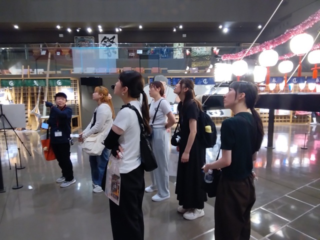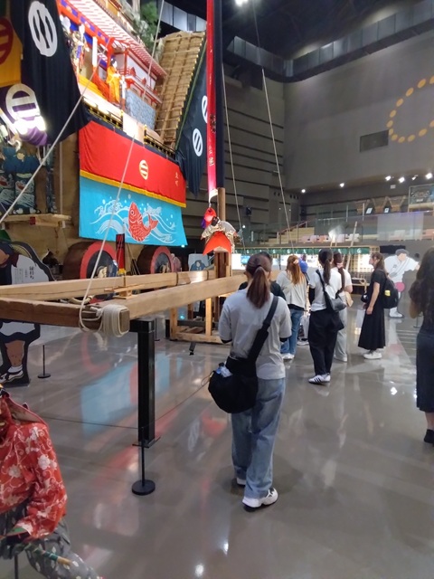 午前中、和倉温泉の復興ツアーに参加しました。ガイドの方の案内で、能登や和倉温泉が受けた地震被害について学びました。21軒あった旅館のうち現在は20軒になり、それも営業しているのはわずか4軒で、有名な加賀屋も地震の影響で取り壊しを余儀なくされると知り、胸が痛みました。道路も浮き上がり、壁には大きなヒビが入り、地震の怖さを改めて実感しました。特に護岸の崩壊が深刻で、海の上に仮設の道路を作り復旧を進めている最中とのことでした。被害の大きさを目の当たりにし、一日も早い復興を願わずにはいられませんでした。ツアーの最後に訪れた和倉温泉お祭り会館では、石川県七尾市の4つのお祭りを実物の山車や映像で紹介する展示を見学しました。ここでは町内の人だけではなく、町外の人も参加してもらって、町の伝統を守っていることがあると聞きました。山車の高さと大きさに圧倒されました。