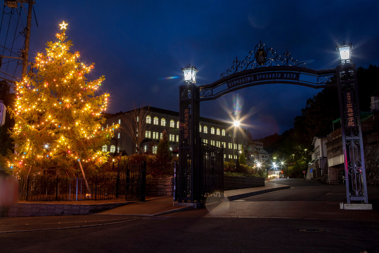 クリスマスに向けて、キャンパスはクリスマスツリーやリースで華やかに飾られます。
