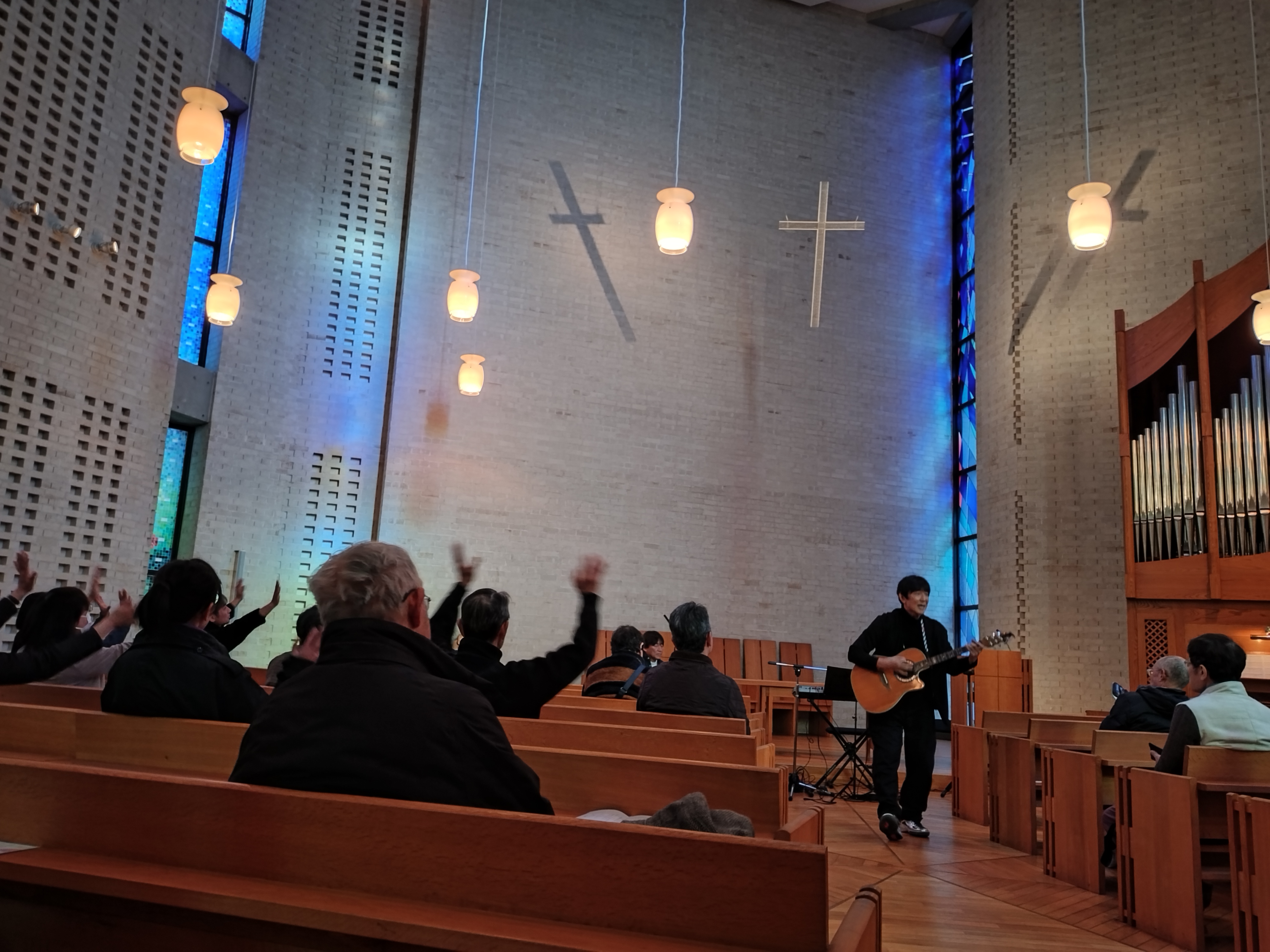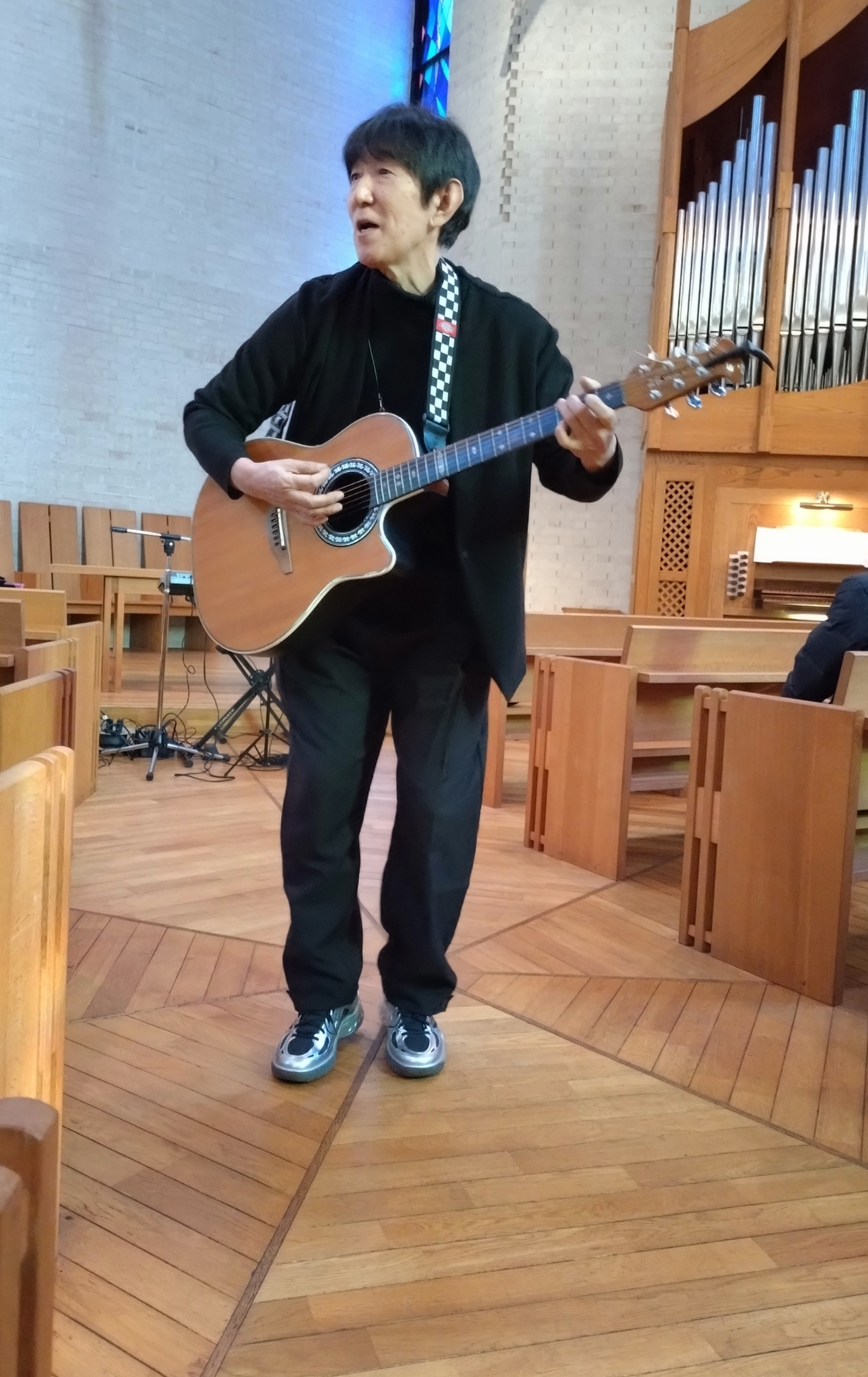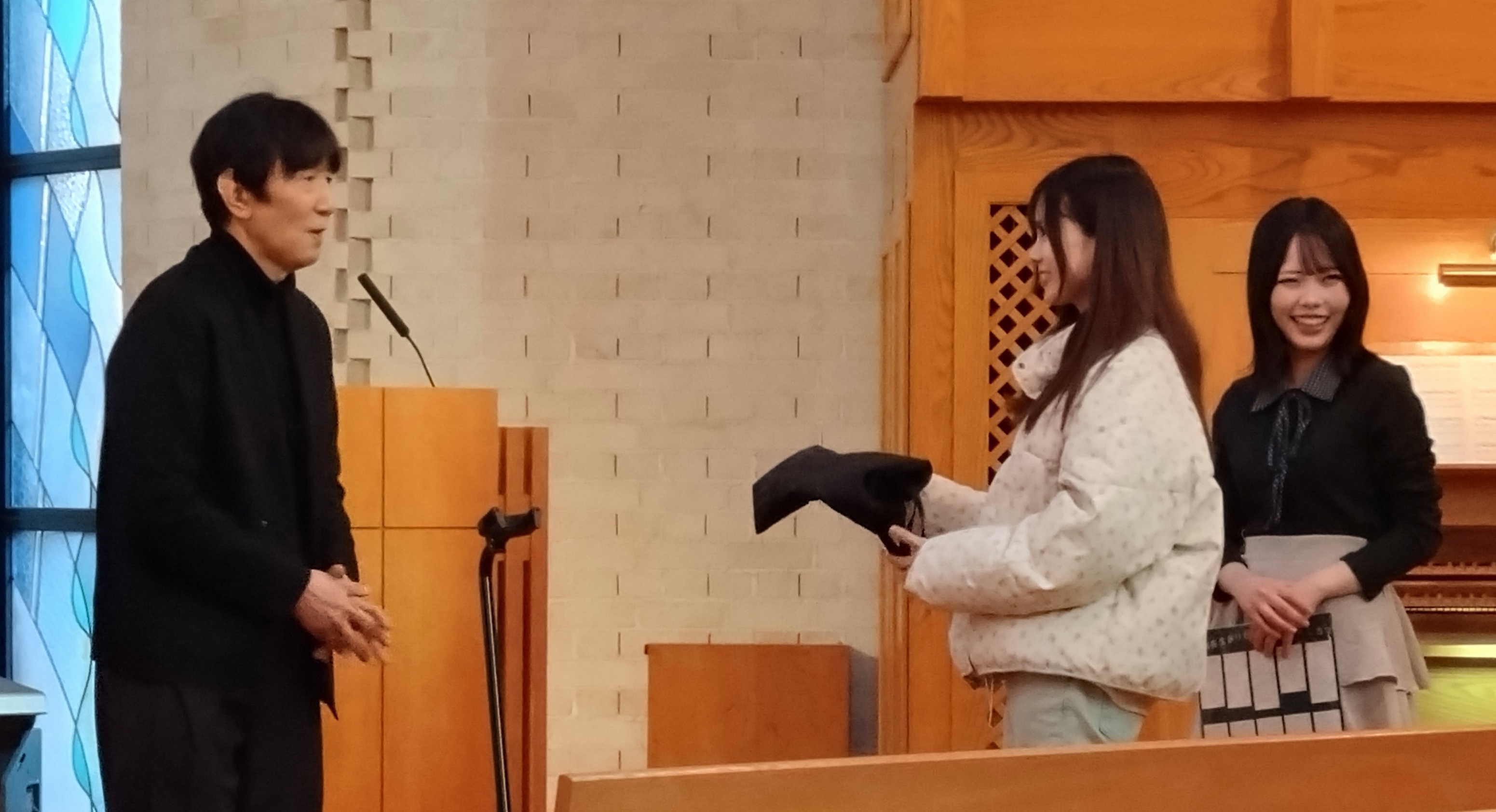 実習等の都合により、キリスト教の時間に行われた講演会に出席できなかった学生のことを思い、チャペルでのライブという形を着想された三桝先生の思いに触れた、児童教育学会副会長・渡辺絢子さんの企画により実現しました。