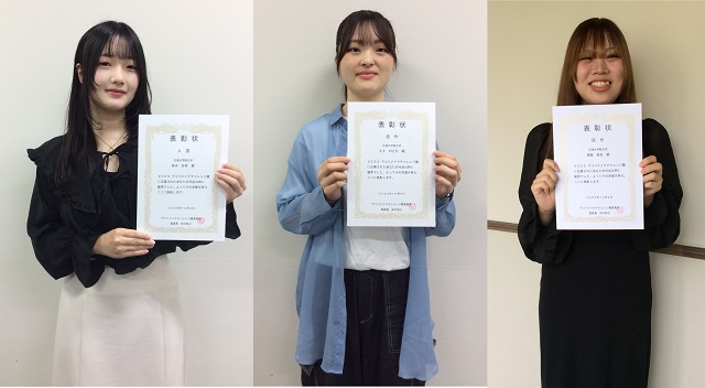 その結果、今年は坂本彩音さん(4年・左)が入賞、大上のどかさん(4年・中央)と重森菜央さん(1年・右)が佳作をいただきました。