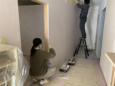 壁一面を丁寧に塗り重ねながら、空間が少しずつ表情を変えていきました。