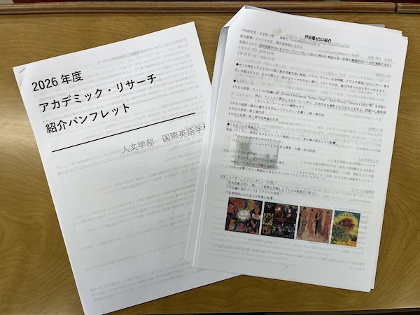 Our department held its annual Academic Research Seminar explanation event. Each student was provided with a booklet that outlines the contents of each of the available seminars.(学生たちは、まずは説明会での情報をもとにゼミ選びから始めます。)