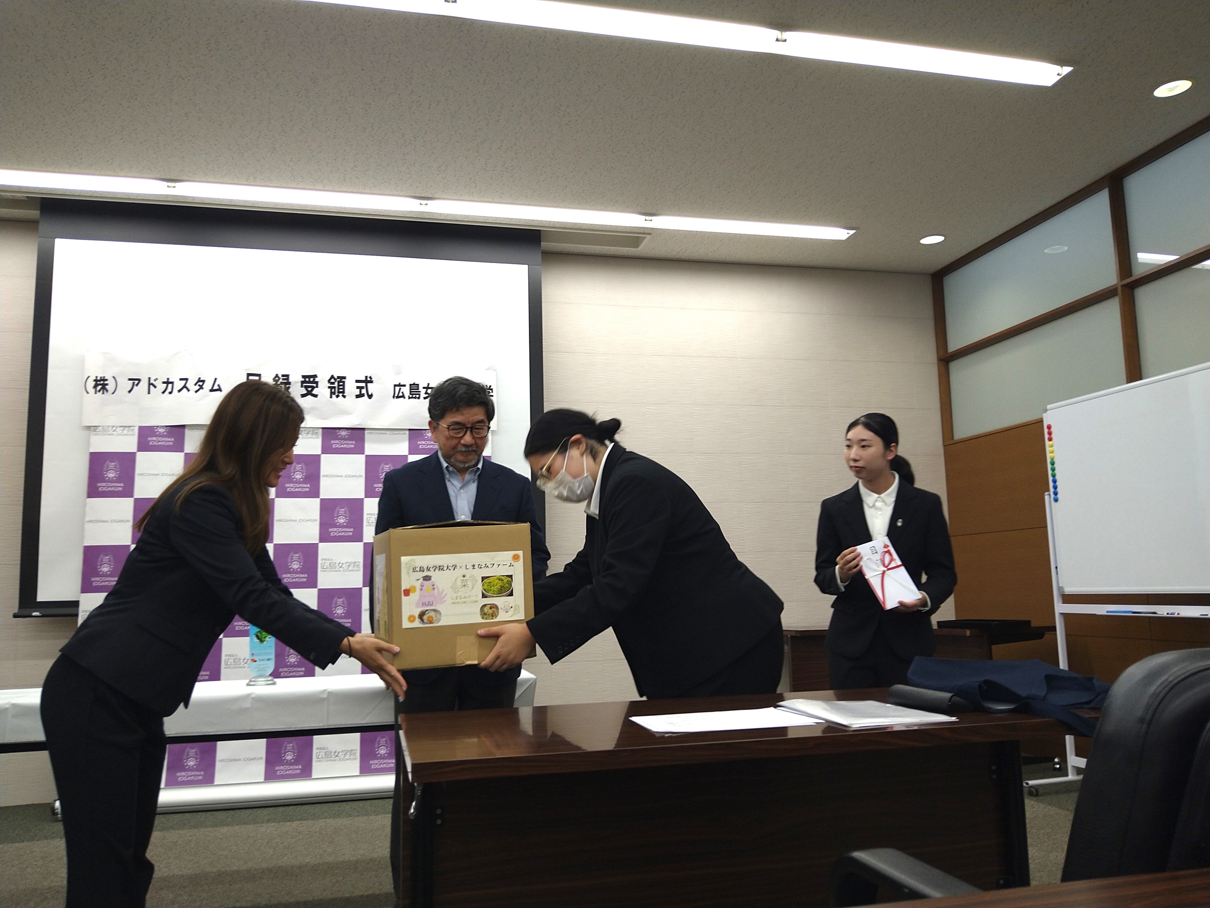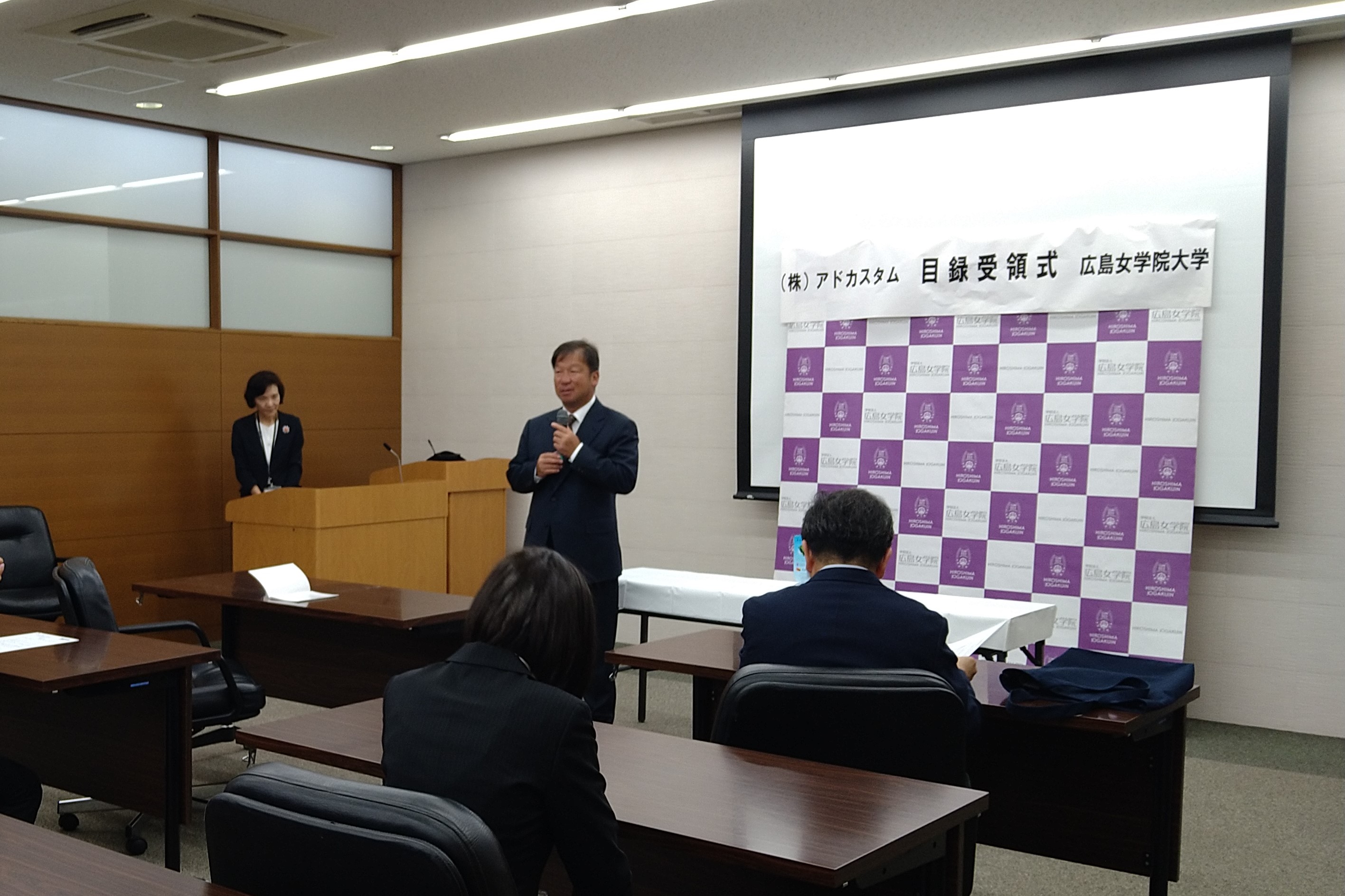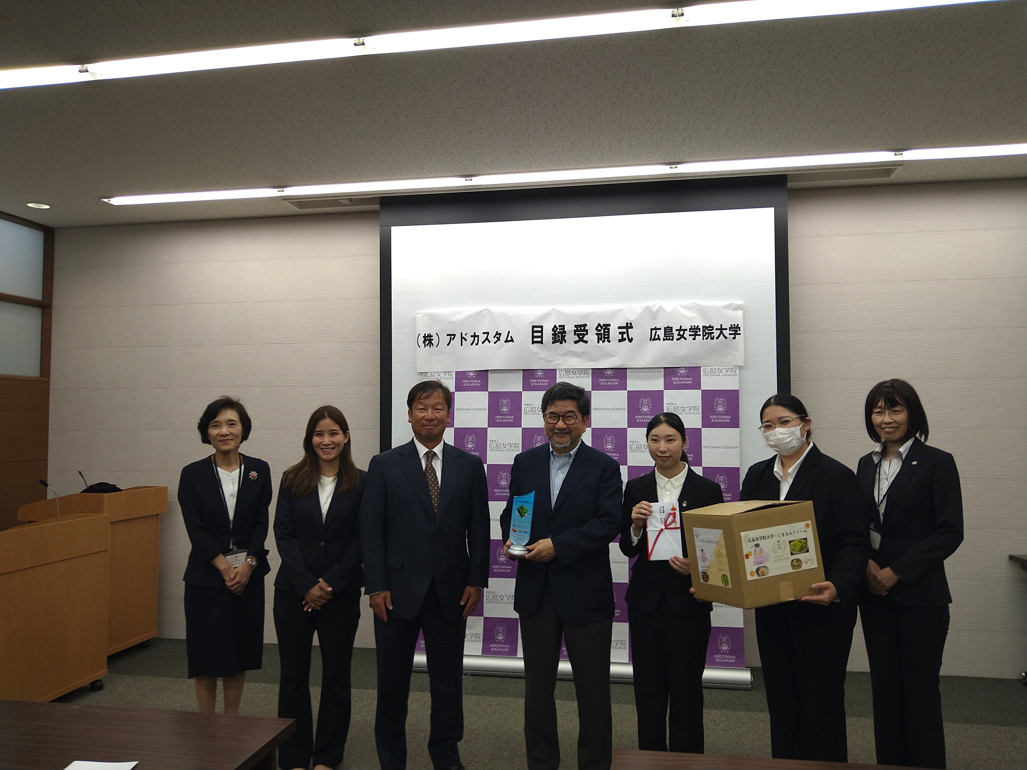 7月18日、(株)アド・カスタム岡本様からの目録受領式が、広島女学院大学にて執り行われました。