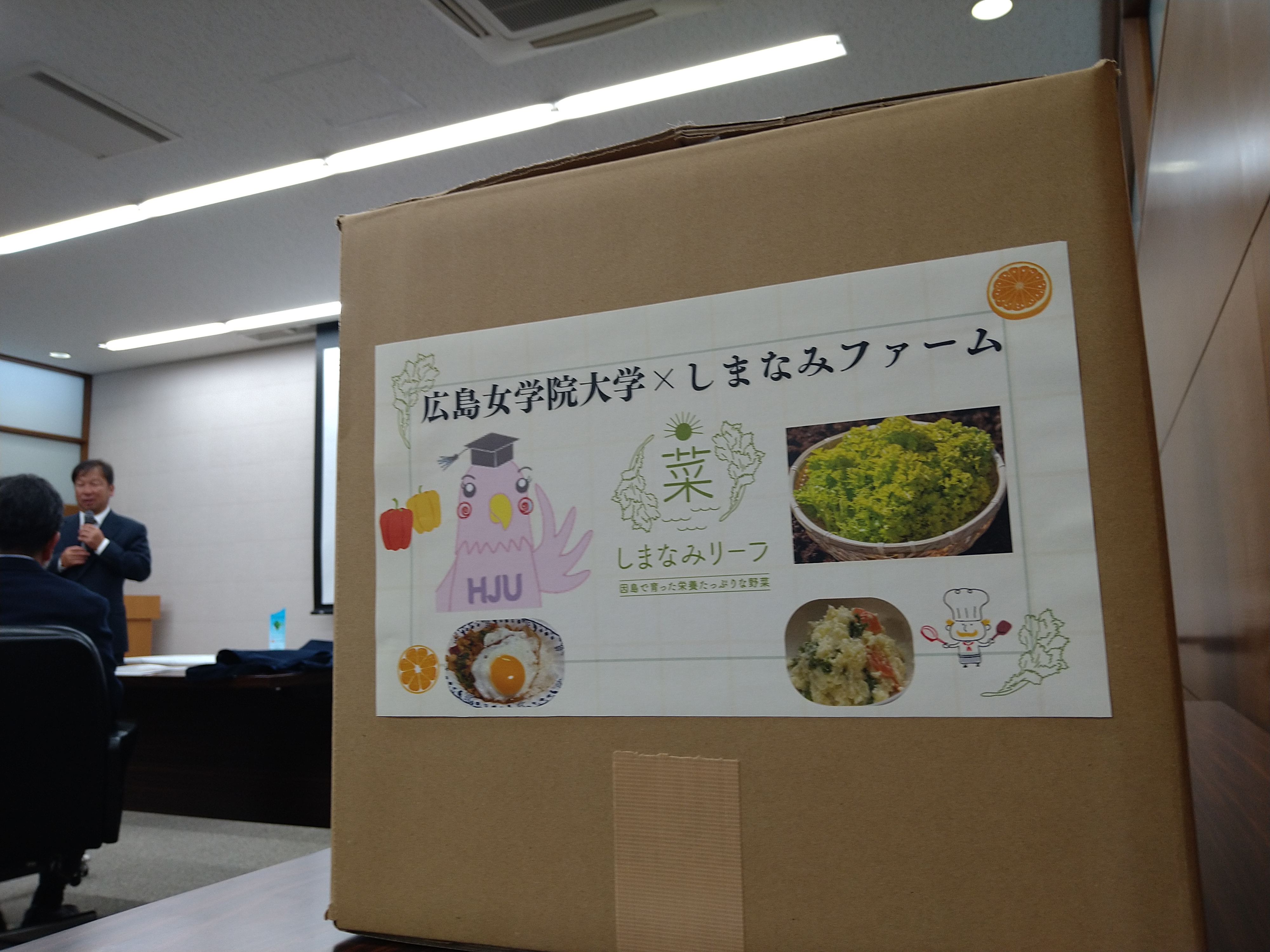 管理栄養学科食育サークルの学生たちが、(株)アド・カスタム岡本様が因島で栽培する葉物野菜 "しまなみリーフ" を使ったレシピを考案し、大学の食堂やオープンキャンパスなどで提供しています。