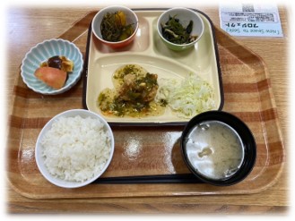 *大学の食堂で提供(揚げ鱈のしまなみリーフあんかけ)*