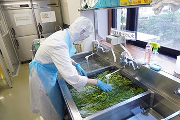 大量調理では、一人の動きが全体に影響するため、声を掛け合いながら進めることがとても大切です。