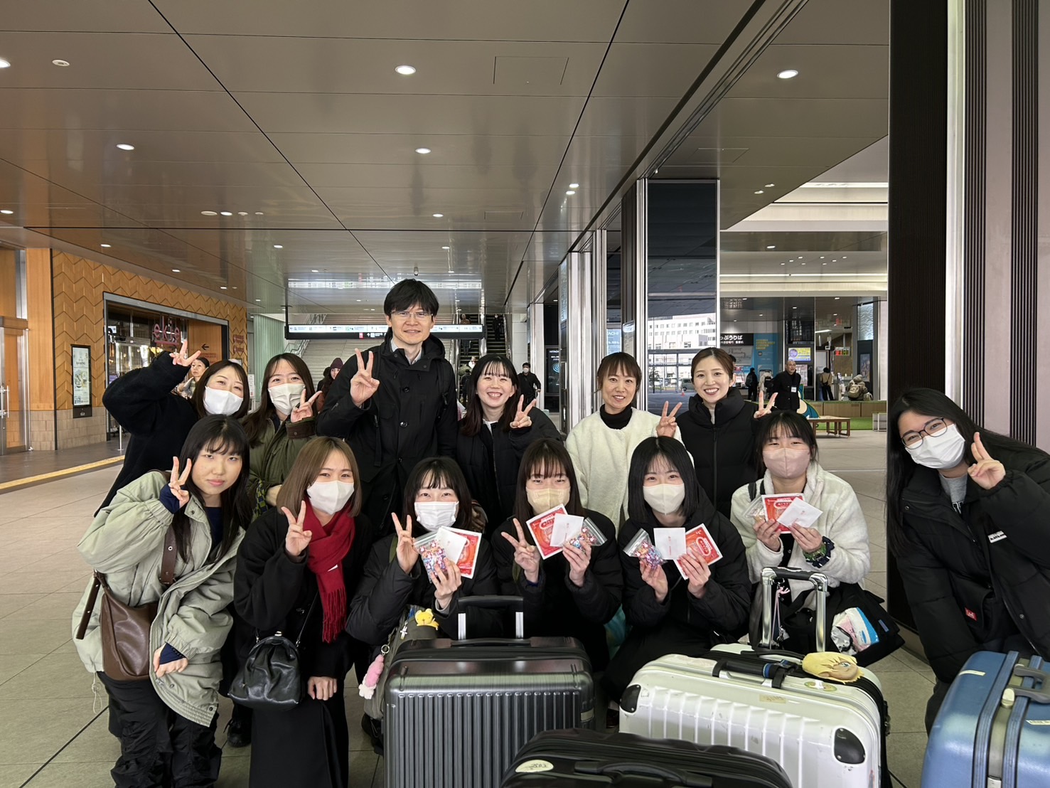 保護者の皆様、HISのご担当者様、管理栄養学科の助手の先生方に見送られ、広島を発ちました。
