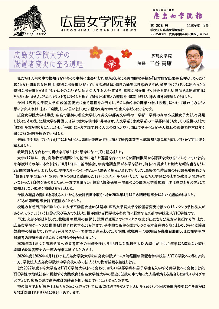 広島女学院報 最新号画像クリックでダウンロード 2026年02月09日【203号】NEW 2025年06月09日【202号】 2025年02月10日【201号】 バックナンバーリンク先はPDFファイルです 2024年度 2024年06月10日【200号】 2023年度 2024年02月10日【199号】 2023年06月10日【198号】 2022年度 2023年02月10日【197号】 2022年06月10日【196号】 2021年度 2022年02月10日【195号】 2021年10月20日【194号】 2021年04月20日【193号】 2020年度 2021年01月20日【192号】 2020年10月20日【191号】 2020年04月20日【190号】 2019年度 2020年01月20日【189号】 2019年10月25日【188号】 2019年04月20日【187号】 2018年度 2019年01月20日【186号】 2018年10月20日【185号】 2018年04月20日【184号】 2017年度 2018年01月20日【183号】 2017年10月20日【182号】 2017年04月20日【181号】 2016年度 2017年01月20日【180号】 2016年10月20日【179号】 2016年04月20日【178号】 2015年度 2016年01月20日【177号】 2015年10月01日【176号】 2015年04月20日【175号】 2014年度 2015年01月20日【174号】 2014年10月01日【173号】 2014年04月20日【172号】 2013年度 2014年01月20日【171号】 2013年10月01日【170号】