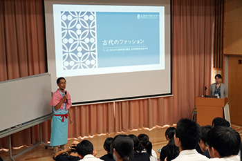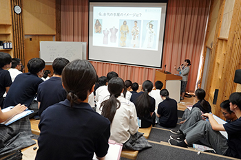 青翔開智高等学校にて楢﨑教授が「古代のファッション」出張講義を行いました