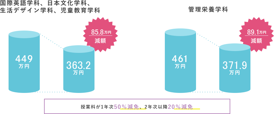 合格者のうち成績優秀者は、授業料が1年次50%減免、2年次以降20%減免となります。