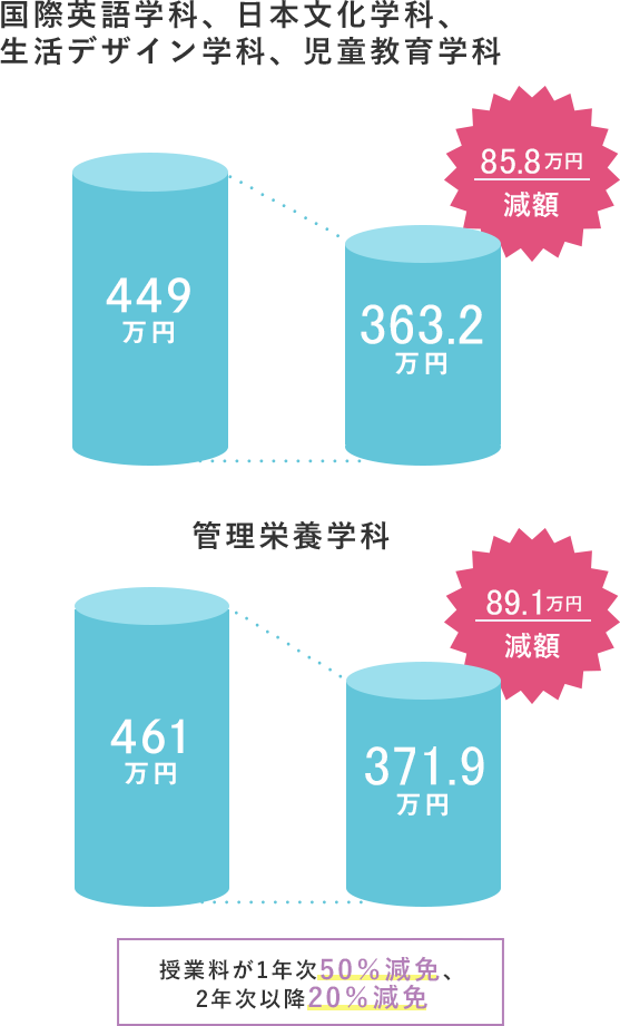 特待生として合格した場合、1年次の授業料が免除、2年次以降の授業料が20%減免になります。