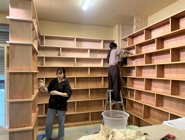 尾道の商店街に新しく誕生するbook&café「灯書堂」の施工現場で塗装作業を体験しました!
