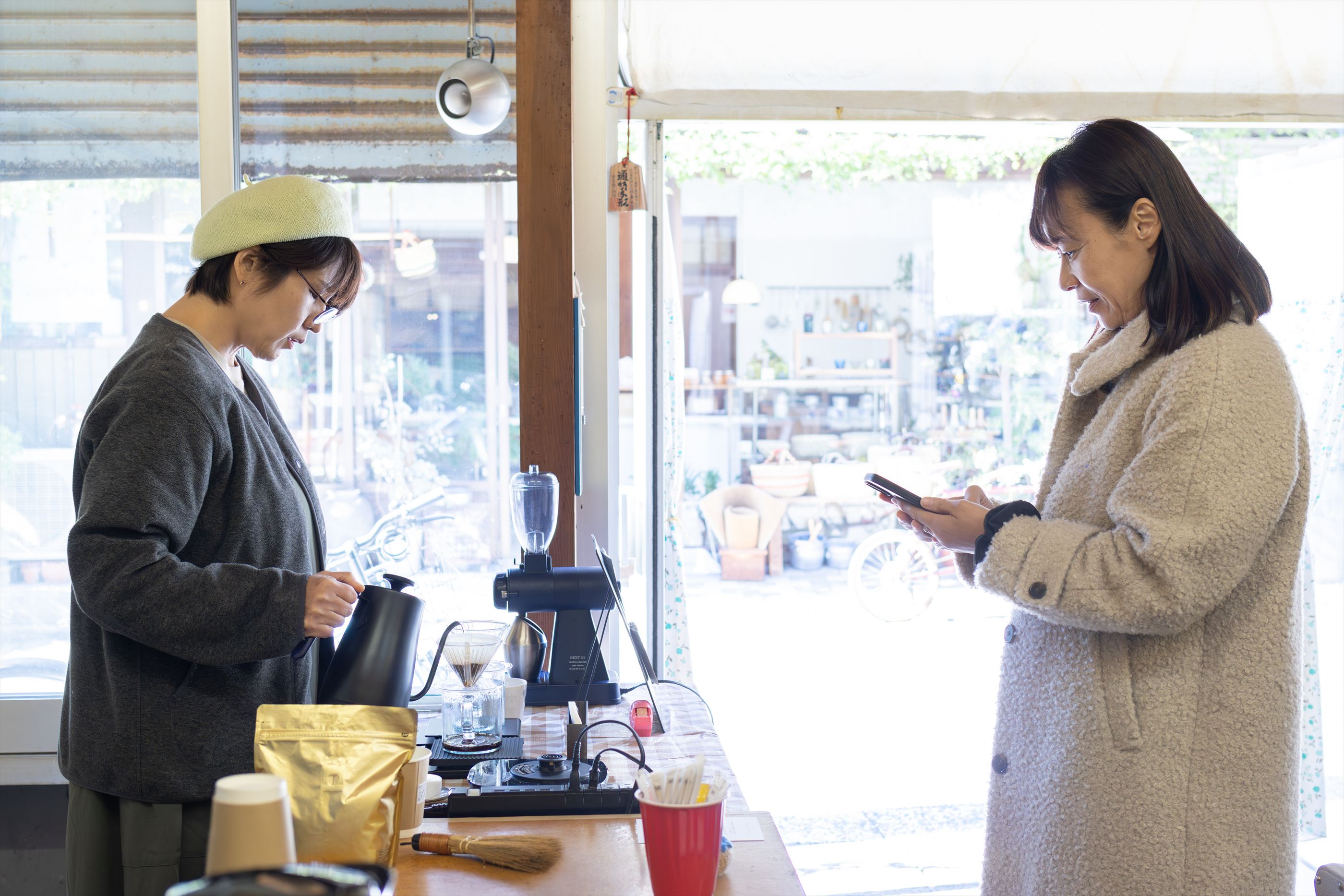 当日は、空き家の内部に椅子やテーブルを配置し、コーヒーを提供するなど、通行人が気軽に立ち寄って一定時間滞在できる空間をつくりました。