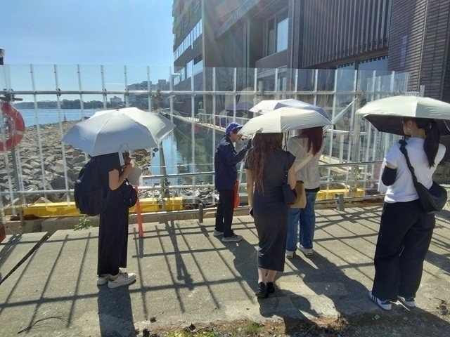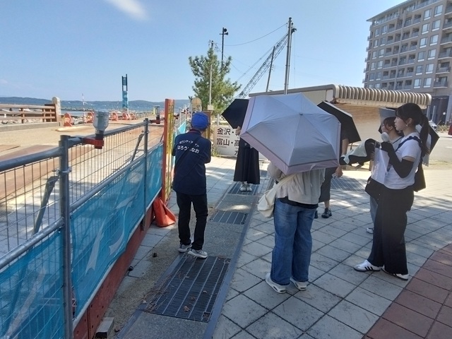 午前中、和倉温泉の復興ツアーに参加しました。ガイドの方の案内で、能登や和倉温泉が受けた地震被害について学びました。21軒あった旅館のうち現在は20軒になり、それも営業しているのはわずか4軒で、有名な加賀屋も地震の影響で取り壊しを余儀なくされると知り、胸が痛みました。道路も浮き上がり、壁には大きなヒビが入り、地震の怖さを改めて実感しました。特に護岸の崩壊が深刻で、海の上に仮設の道路を作り復旧を進めている最中とのことでした。被害の大きさを目の当たりにし、一日も早い復興を願わずにはいられませんでした。ツアーの最後に訪れた和倉温泉お祭り会館では、石川県七尾市の4つのお祭りを実物の山車や映像で紹介する展示を見学しました。ここでは町内の人だけではなく、町外の人も参加してもらって、町の伝統を守っていることがあると聞きました。山車の高さと大きさに圧倒されました。