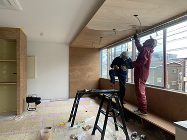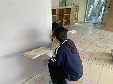 壁一面を丁寧に塗り重ねながら、空間が少しずつ表情を変えていきました。