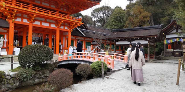 午後からは杉山先生が婚礼部で支配人を勤めておられる賀茂別雷神社(上賀茂神社)へ移動しました。京都で最も古い神社といわれる賀茂別雷神社(上賀茂神社)には初めて行く学生がほとんどでした。