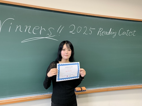 1学期間で読む語数の目標が決められており、前期はほとんどの学生が達成しました。また、Reading Challenge Contest という表彰制度もあります。読んだ語数と達成順位によりいくつかの賞を設け、学期末には各賞の受賞者を表彰しています。