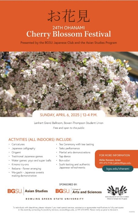 A. ボーリンググリーン州立大学では、日本文化を紹介する祭りも行われています。留学先の大学の地域には日本人協会があり、月に一度の集まりや祭りが行われ、日本料理や日本文化を楽しみます。この祭りではスーパーボールすくいや習字の体験、お寿司や琥珀糖の配布がありました。