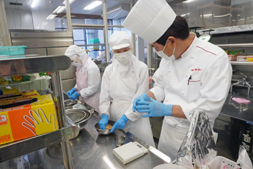 今回は、ANAクラウンプラザホテル広島 中国料理「桃李」とのコラボで開発したメニューの一部を実習で提供。