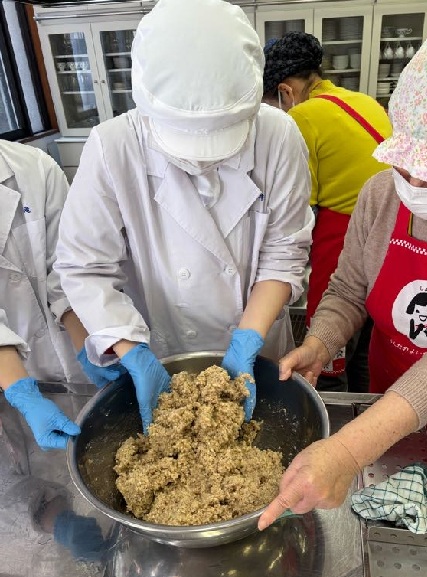 今年もJA広島市レディースクラブ福木支部の皆様にご協力いただき、味噌づくり体験を実施しました。参加した食育サークルの1・2年生は、味噌づくり初挑戦。レディースクラブの皆様に分かりやすく丁寧にご指導いただき、貴重な体験となりました。