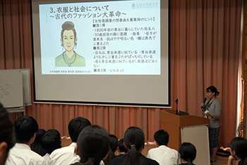青翔開智高等学校にて楢﨑教授が「古代のファッション」出張講義を行いました