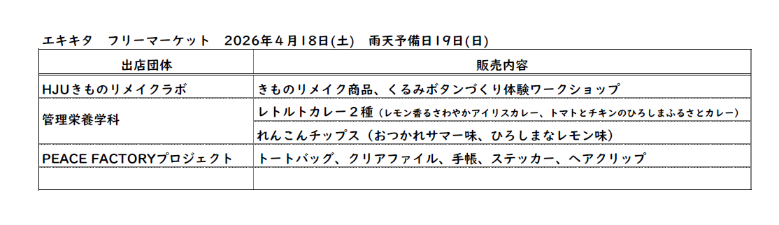 4月18日(土)にエキキターレにて開催される「エキキタフリーマーケット」に